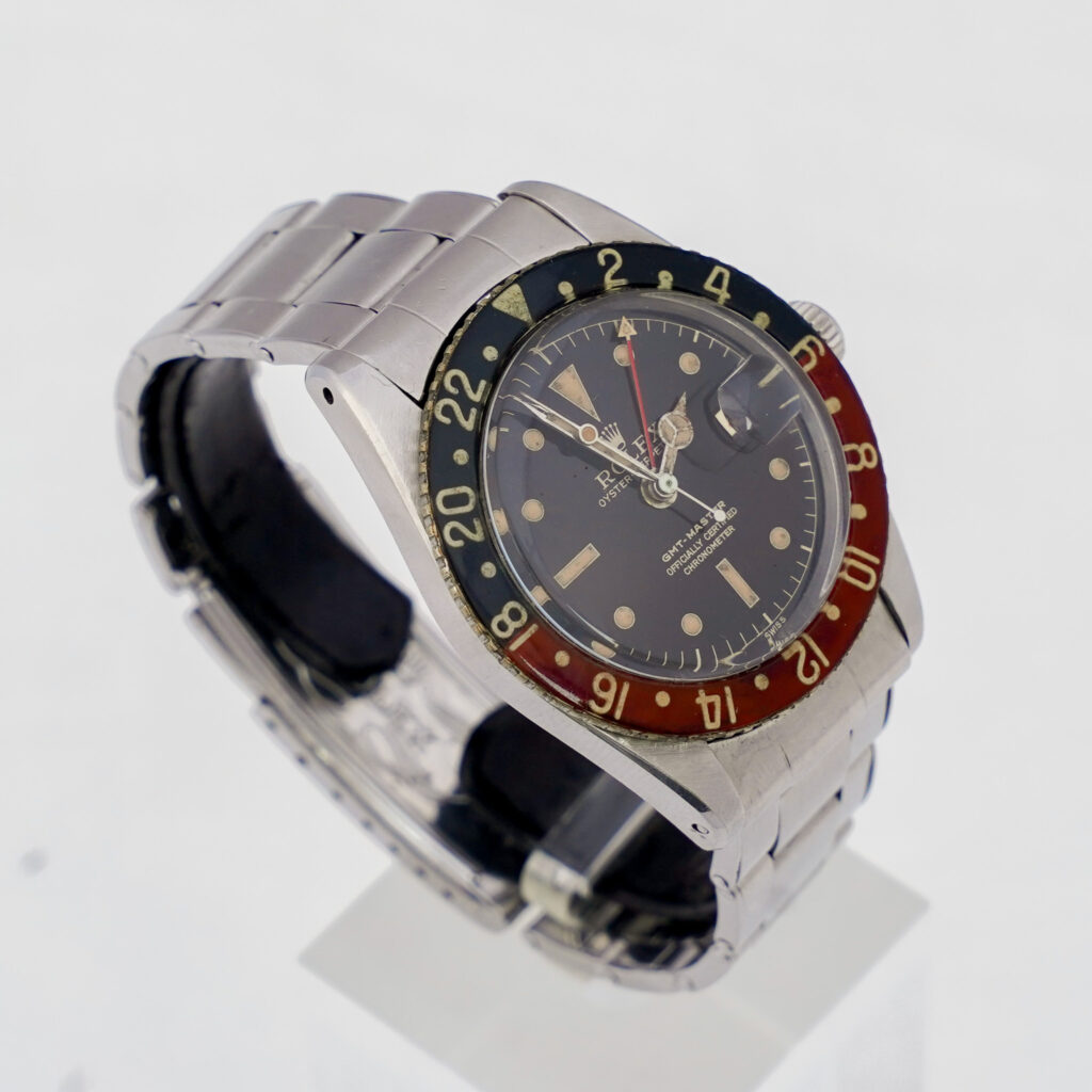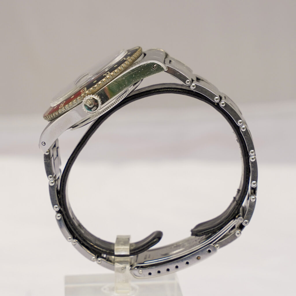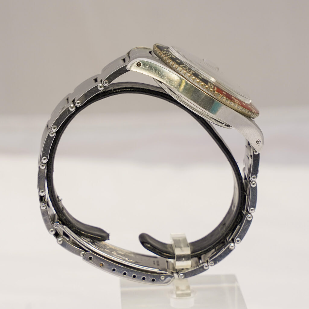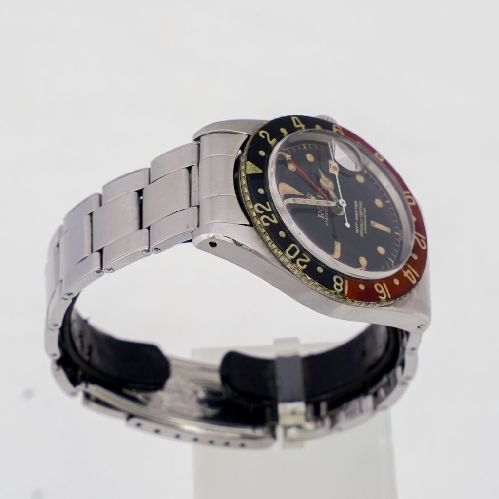 The case, serial 397,xxx with matching 1958 caseback, is fitted with a scarce period-correct riveted Oyster bracelet featuring 58 end links and a “Big Logo” signed clasp. Altogether, the watch presents with strong originality in its core components and retains the unmistakable charm of early GMT-Master production.